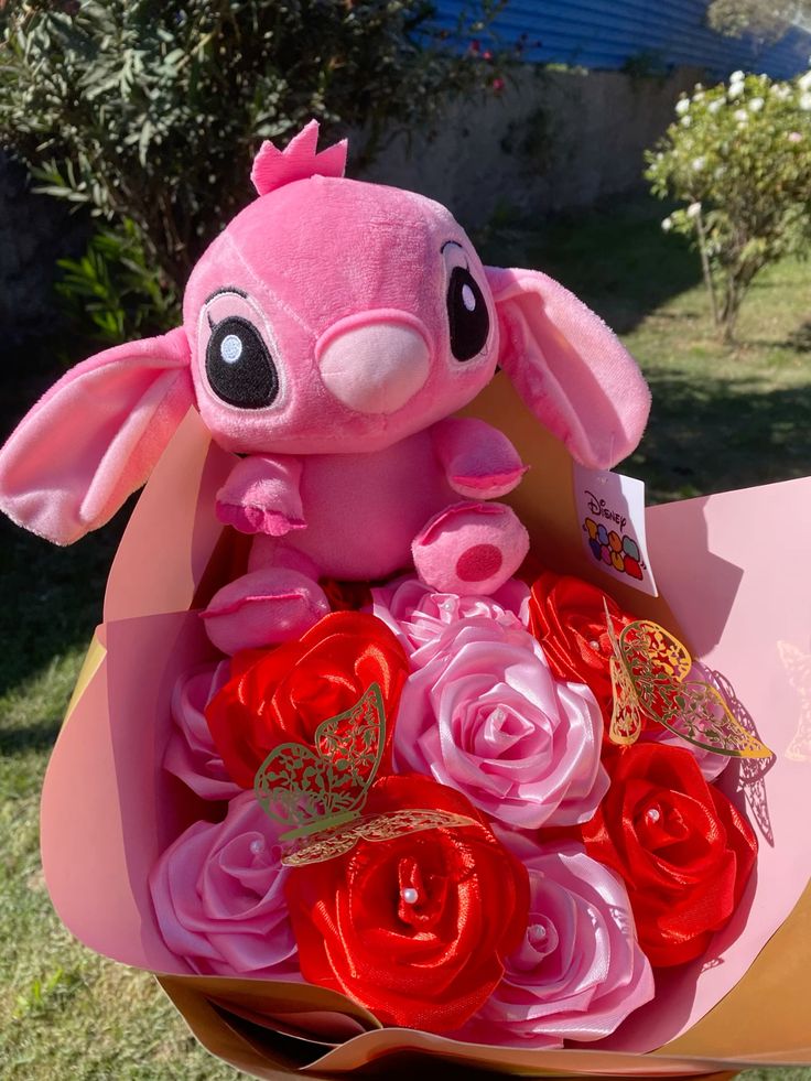 Tierna combinación de un ramo de rosas rosadas con un peluche de conejita en tono rosa, coronada con una pequeña tiara dorada. Ideal para regalar en cumpleaños, aniversarios o para sorprender a alguien especial con un detalle lleno de ternura y dulzura.